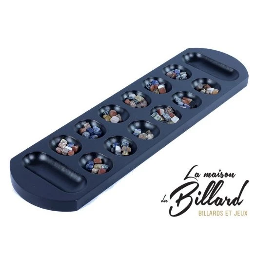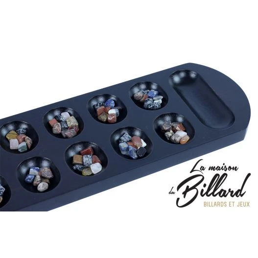 Ce jeu se joue traditionnellement avec des graines d’awalé mais pour plus d’esthétique nous vous proposons des pierres de différentes couleurs.