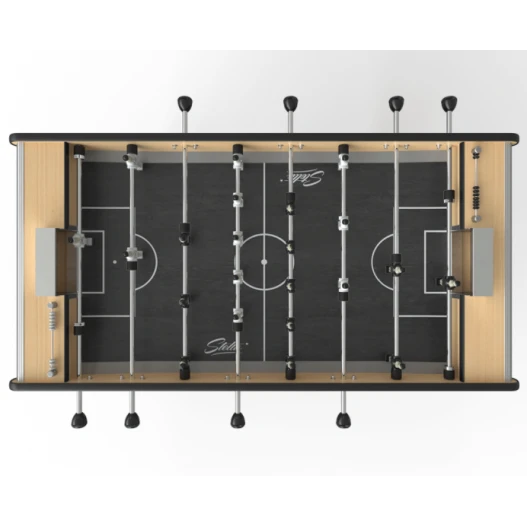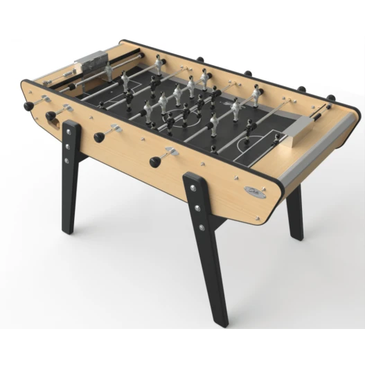Ce baby-foot de la marque française Stella vous propose un design léché de type industriel. Ce dernier est parfait car il peut se marier avec n’importe quel type de décoration d’intérieur. Son rendu en bois et son tapis gris sont très tendances et font de ce baby-foot un objet de décoration incontournable.