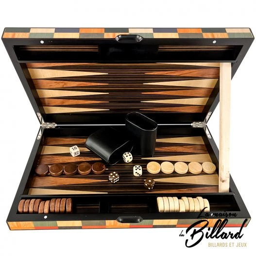 Nouveau dans notre collection de backgammons, dĂ©couvrez le coffret Arlequin qui se distingue pour son effet dâassemblage de plusieurs essences de bois.