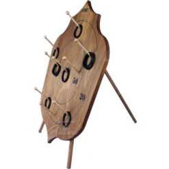 Ce jeu de lancer d’anneaux est un excellent jeu d’adresse en bois pour jouer en famille ou entre amis. Il peut s’accrocher au mur, ou se poser sur une table, le pied est fourni.