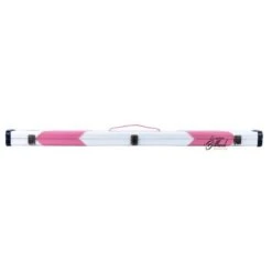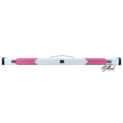 Etui de rangement de queue de billard 1/2 avec habillage simili-cuir rose et blanc.
