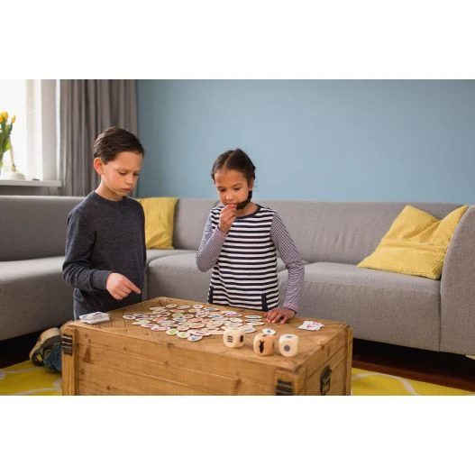 Ce jeu est parfait pour votre enfant puisqu’il va lui permettre de développer sa concentration, sa mémoire ainsi que sa capacité d’analyse tout en s’amusant. La particularité de ce jeu est qu’il peut aussi bien se jouer avec les 3 dés pour un niveau avancé ou bien avec les cartes pour un niveau plus facile. Il s’adapte donc parfaitement autant aux petits qu’aux plus grands.