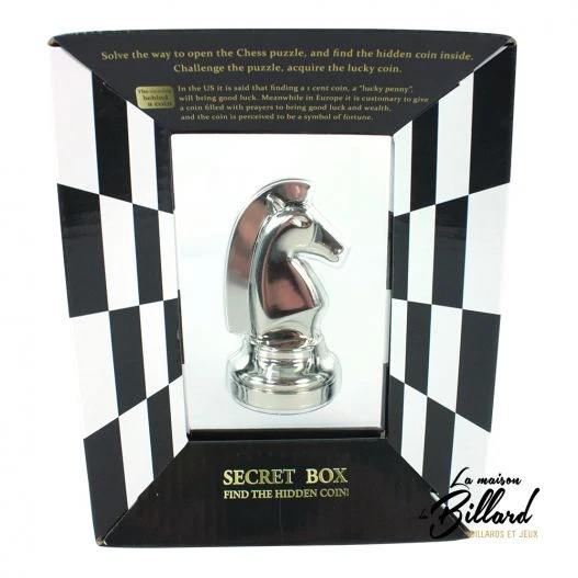 Les férus de puzzles trouveront rapidement la solution (en moyenne 15 à 20 minutes), toutefois le mécanisme intérieur est vraiment ingénieux, et la pièce d’échecs est très élégante. C’est donc une belle pièce à offrir à un collectionneur de .
