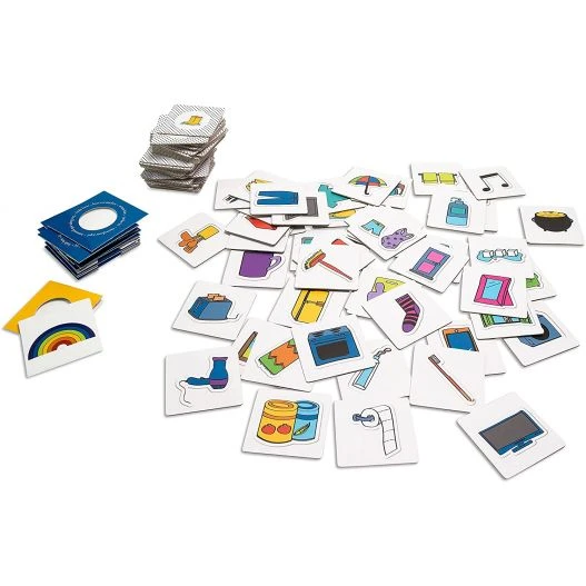 Comme toujours chez BS Toy, la fabrication du jeu est particulièrement soignĂ©e et vous trouverez dans le coffret, 101 cartes (51 Ă rayures et 50 Ă pois) reprĂ©sentant des objets que tout le monde possède et 22 enveloppes pour y glisser votre sĂ©lection de cartes qui serviront d’Ă©tapes Ă franchir au cours du jeu.