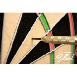 La différence se fait au niveau des zones de délimitation. En effet, celles-ci sont faites avec un fil métallique et sont fixées à l’aide de petites agrafes. Sur les modèles haut de gamme, les fils de délimitation sont souvent biseautés et parfois sans agrafe, comme c’est le cas sur notre cible de fléchettes professionnelle. Cette différence limite le risque de rebond des fléchettes lorsque vous visez sur la zone de délimitation.