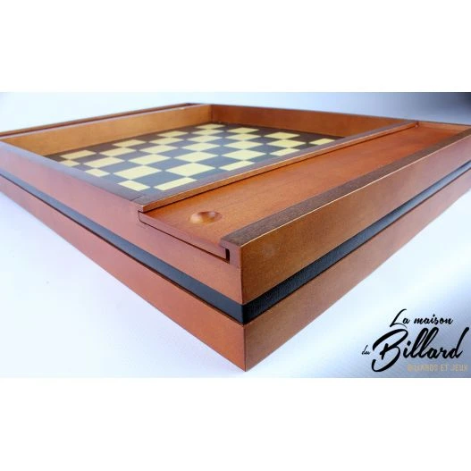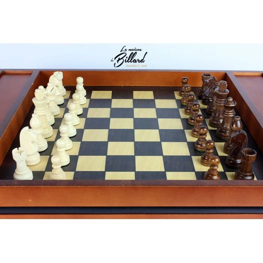 Difficile de trouver un beau coffret double jeu Ă©chec et dame. C’est pourquoi nous avons cherché la perle rare que l’on ne trouve pas n’importe oĂą ! L’intĂ©gralitĂ© de la structure du jeu est fabriquĂ©e en bois massif et le cadre du jeu a Ă©tĂ© creusĂ© pour incruster un liserĂ© dĂ©coratif en simili cuir. Toutes les pièces du jeu sont Ă©galement en bois.