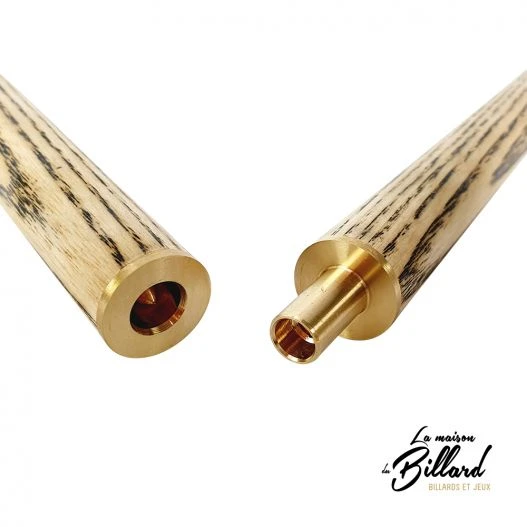la flèche est réalisée dans un seul et même morceau de frêne. Afin de ne pas dénaturer les vibrations après impact, notre cue maker a veillé à ce que le sens du fil du bois soit bien respecté entre les parties supérieure et inférieure de la queue. Cela améliore le confort de jeu et vous permet d’être plus juste dans vos tirs.