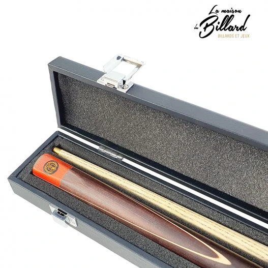 La queue de billard est fabriquée dans un seul et même morceau de frêne. La jonction ½ smash-ash permet d’aligner correctement le fil du bois ensemble, ce qui optimise les sensations de jeu après impact sur la blanche. La virole (partie métallique en bout de queue) est faite en laiton et offre un bon amorti après impact..