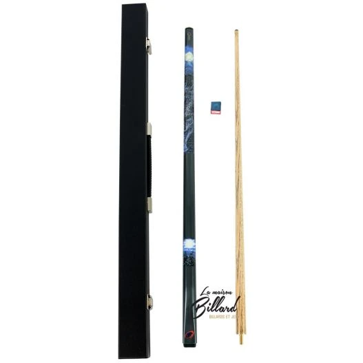 Le pack comprend 1 queue de billard 2 parties, une mallette et une craie bleue.