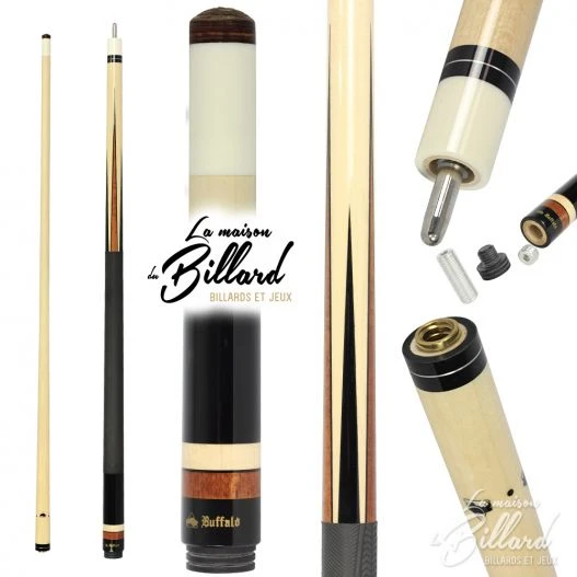 La queue américaine Buffalo pro se démarque par son design externe. Un mélange de couleur et de décoration séduit notre pupille. Le fût est fabriqué avec différents bois de luxe qui met en valeur la queue.