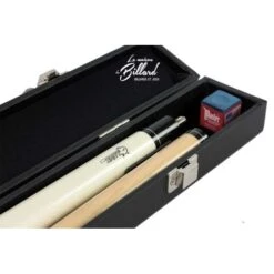 Le pack comprend 1 queue de billard AmĂ©ricain blanche et noire, une mallette de transport et une craie bleue.Â