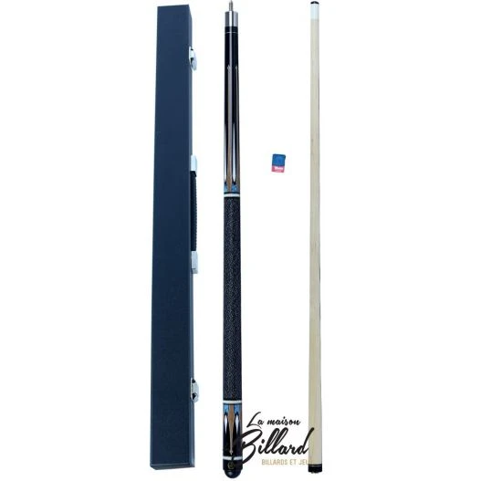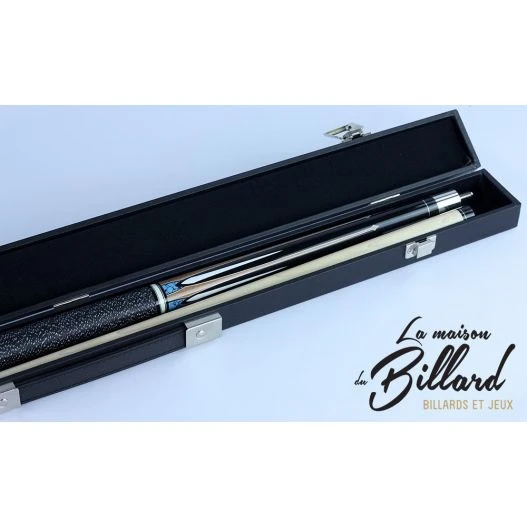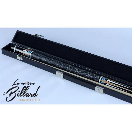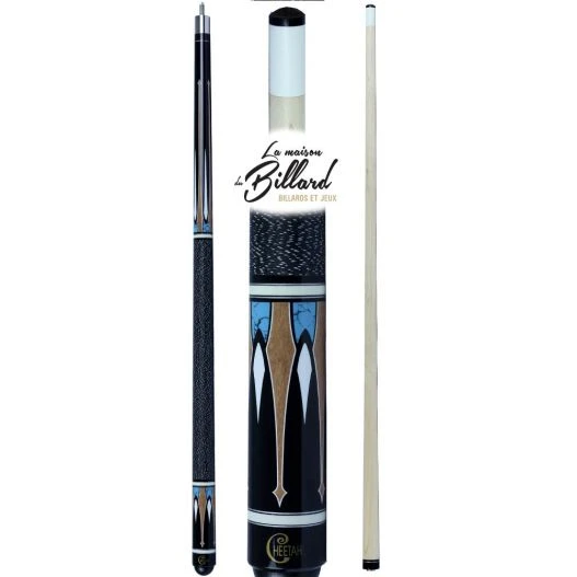 Si vous ĂŞtes Ă la recherche d’une queue de billard au pur style amĂ©ricain nous vous proposons la queue Cheetah. Effectivement le style bois naturel, nacre blanche et corail bleu donne beaucoup de caractère Ă cette queue de billard amĂ©ricain.Â