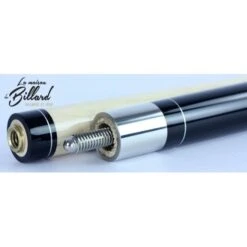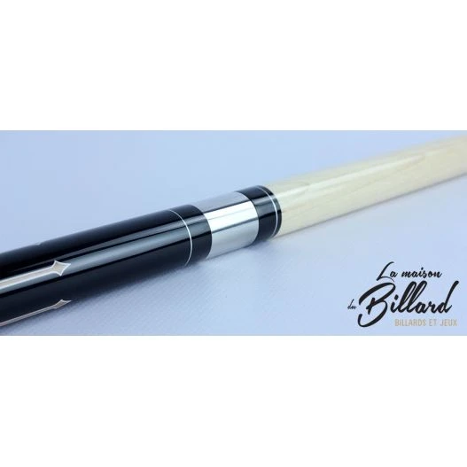 CĂ´tĂ© finition, on apprĂ©cie Ă©galement les bagues mĂ©talliques prĂ©sentes au niveau de la jonction 1/2 de cette queue de billard.Â