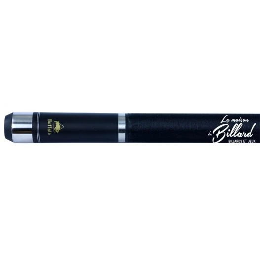 Un autre aspect technique très intĂ©ressant sur cette de queue de billard Buffalo sont les jonctions. Effectivement cette queue de billard possède une jonction en son centre avec un système d’attache rapide, ce qui permet de monter et dĂ©monter cette queue de billard et de la transporter facilement. La deuxième jonction se situe sur le bas du fĂ»t. Celle-ci sera très intĂ©ressante pour les joueurs qui manquent de place autour de leur billard. Effectivement cette jonction n’est pas une jonction classique en 3/4 puisqu’elle mesure que 10 cm ! Il sera donc possible de raccourcir la queue de billard de 10 cm passant de 148 cm Ă 138 cm ! trĂ©s pratique, notament lorsqu’on manque de place autour du billard pour jouer convenablement.