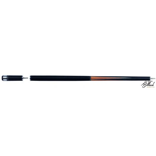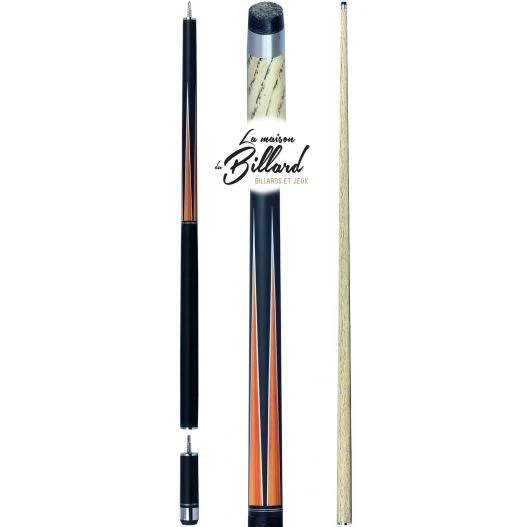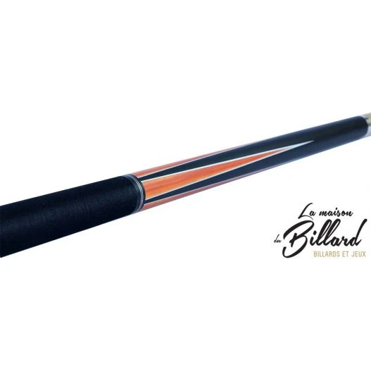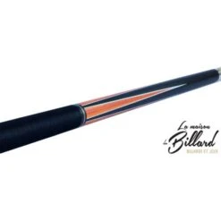 Voici une queue de billard Buffalo faite pour jouer au 8 Pool. Cette queue de billard de couleur noire et orange a un design soigné. Sur le fût de cette queue de billard on remarque trois bagues en acier de couleur identique à la virole de la flèche. Des parties grises métallisées sont également présentes sur le dessin de cette queue de billard. On peut donc dire que le look de cette queue de billard est très harmonieux.