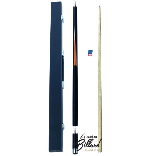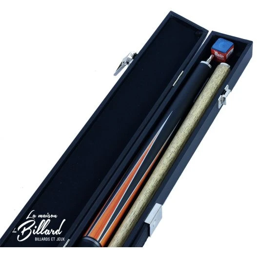 Cette queue de billard Buffalo orange et noir est livré en coffret avec étuis et craie.