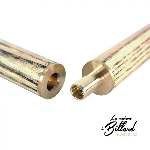 La jonction « smash-ash » permet de conserver le sens naturel du fil du bois, lorsque les deux parties sont vissées entre elles. Cette façon d’assembler la jonction offre un jeu pur, sans avoir à transporter une queue monobloc.