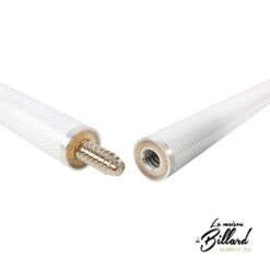 Nous ne voulions pas que vous ayez l’impression d’une queue de billard trop légère, malgré le côté fibre effet carbone. C’est pourquoi nous avons souhaité que le fût soit lesté, afin de vous offrir un poids idéal de 480 grammes. Ainsi, le fût lesté vous permettra de doser correctement la puissance de vos tirs.