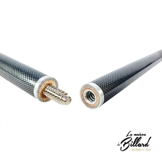 Nous ne voulions pas que vous ayez l’impression d’une queue de billard trop légère, malgré le côté fibre effet carbone. C’est pourquoi nous avons souhaité que le fût soit lesté, afin de vous offrir un poids idéal de 480 grammes. Ainsi, le fût lesté vous permettra de doser correctement la puissance de vos tirs.