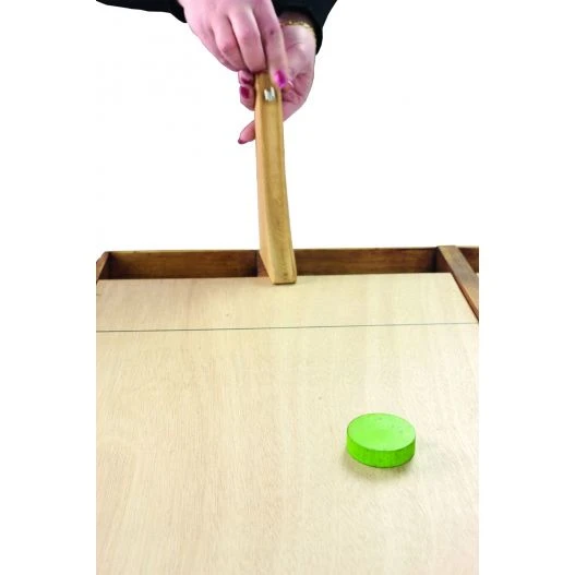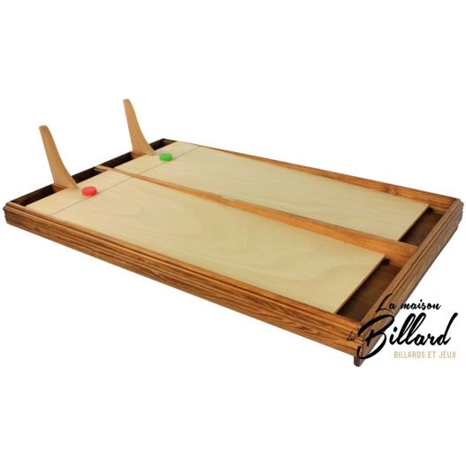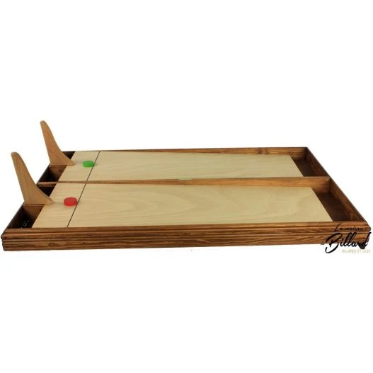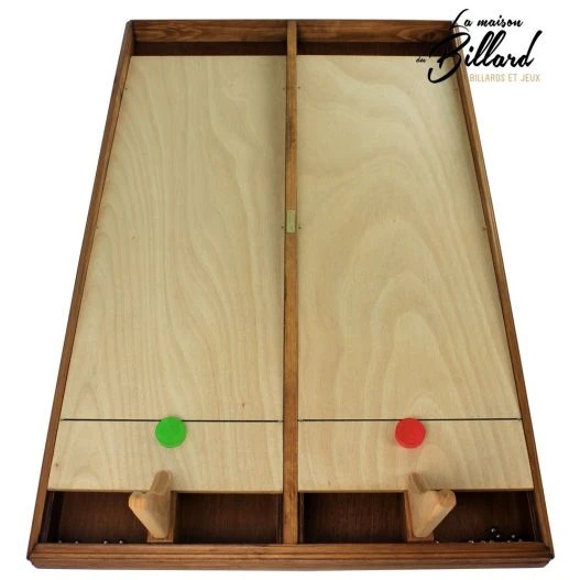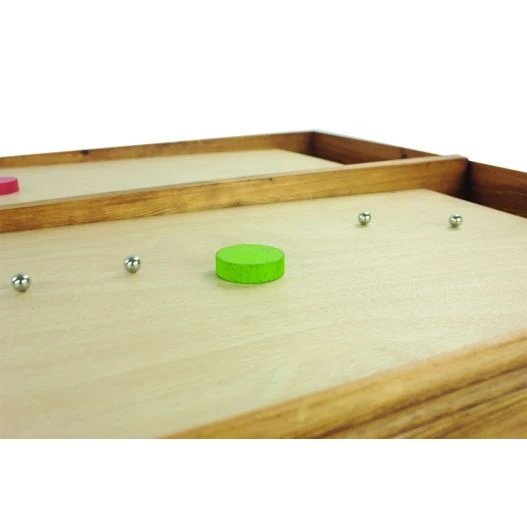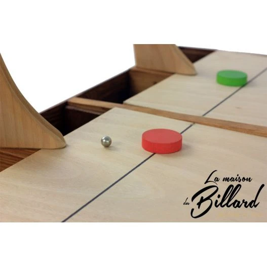 Être le premier à placer son palet au bout du jeu. En début de partie les palets sont placés à la ligne de départ. Dés que la partie commence les joueurs vont simultanément faire partir des billes depuis leurs rampe de lancement, dans le but de percuter leur palet pour le faire avancer. Ainsi les joueurs devront être rapides et habiles. Effectivement ils devront diriger leur rampes pour que leurs billes prennent la direction du palet. Le premier à avoir placé sont palet au bout du jeu sera le gagnant. Les parties sont courtes environs 3 minutes, astucieux, le jeu est muni d’un systéme de retour de billes, les joueurs ne sont donc pas limités dans leurs tirs.