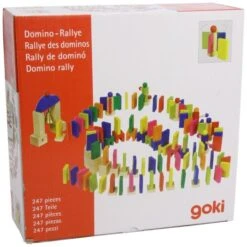 Dominos Rallye en Bois comporte 247 pièces colorées qui peuvent être disposées de façon originale. De plus, le jeu comporte également des blocs originaux pour complexifier le parcours de dominos.