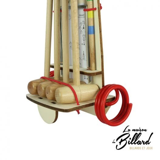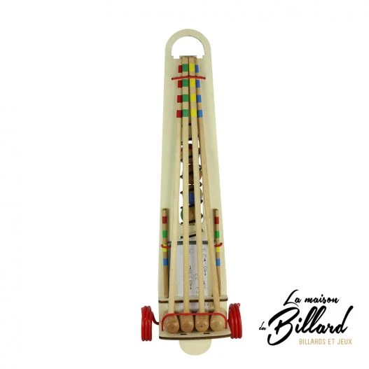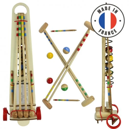 Le Jura est une région très réputée pour la fabrication de jouets en bois. Ses forêts abondantes et son climat favorable permettent la construction de jeux de qualité et durables dans le temps. Ce jeu de croquet est fabriqué par un artisan jurassien. Un tourneur sur bois qui propose également de superbes bilboquets et jeux de pétanque en bois.
