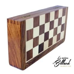Pour vous offrir un jeu qui résistera à tous les voyages et restera impeccable dans le temps nous avons fait le choix de sélectionner une marqueterie de plus de 1,5 mm d’épaisseur. Ensuite les bois utilisés sont principalement le palissandre et le buis. Des bois de grande qualité, très denses et extrêmement résistants dans le temps.