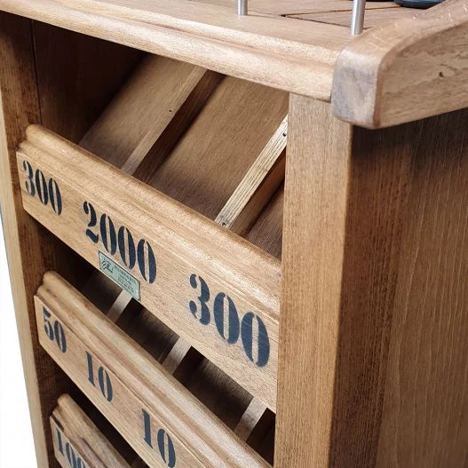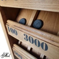 Le dos du jeu est assemblé par un « aboutage mi bois en L ». Cet assemblage permet de renforcer la rigidité du meuble et d’éviter la casse en cas de chocs. Pratique si vous faites partie des professionnels qui transportent régulièrement le jeu dans un véhicule. Ensuite le piétement est assemblé en tenons mortaise, une méthode à l’ancienne très efficace pour faire un piétement résistant.