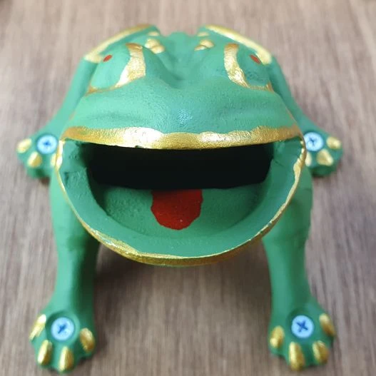 Une grenouille en fonte décorée comme à l’époque et peinte à la main. Elle apporte une véritable âme à ce jeu, et rend chaque pièce unique.