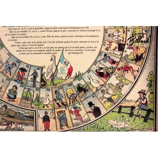 Toute l’originalité de cette version du jeu de l’oie réside dans son dessin typique des années 1900. Un style vintage, qui se distingue par ses illustrations détaillées et ses 63 cases toutes différentes.