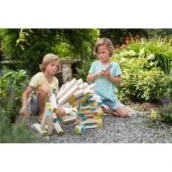 Les enfants pourront également utiliser les 60 briques de ce jouet en bois sous forme de dominos rallie ou de jeu de construction. Une belle alternative à la version classique du Jenga.