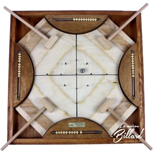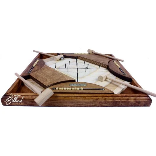 Initialement, cet ancien jeu de bar ressemblait plus à un genre de billard de terre, où il fallait faire passer une grosse boule en bois au milieu d’un anneau, mais très vite, le jeu s’est transformé en version de table, permettant ainsi à plus de personnes d’y jouer.