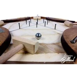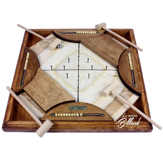 Pour déterminer un gagnant, vous pouvez jouer en mode classement, c’est-à-dire commencer la partie à 4 joueurs, puis à 3 joueurs, avant de finir en duel. La règle vous semble facile ? Ne vous fiez pas aux apparences, des petits clous situés au milieu du plateau de jeu viennent déterminer la trajectoire de la bille en acier, rendant la tâche plus complexe et le jeu plus challengeant !