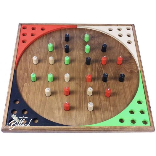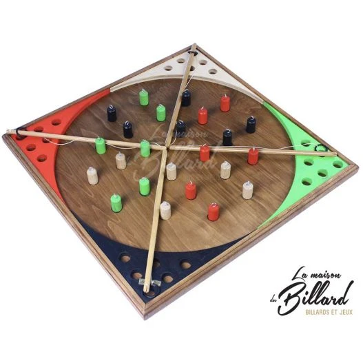 Le premier joueur Ă ranger tous ses plots Ă leur base remporte la partie.