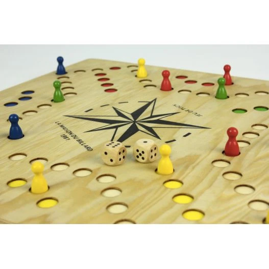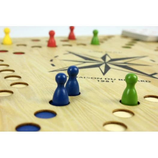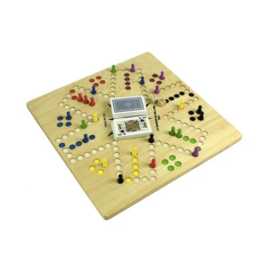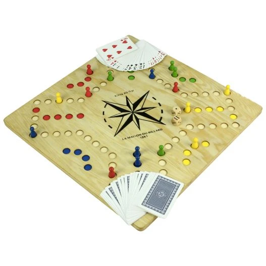 Certaines cartes comme le roi, l’As, le Valet, le 7 et le 4 permettent aux joueurs des coups spéciaux. Notre magasin de jeux en bois vous propose à la vente cette version 2 à 6 joueurs grâce à un plateau de jeu réversible.