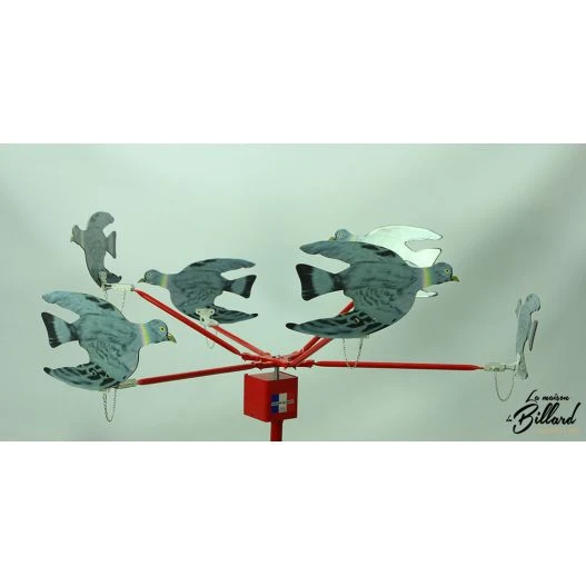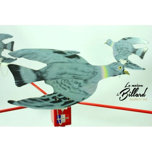 Cette version moderne permet aux pigeons de tourner sans s’arrêter et surtout sans avoir à remonter le mécanisme à chaque fois.