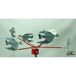 La force de ce jeu (et qui le rend aussi prenant) est qu’il est très simple à prendre en main. Il est composé d’une structure métallique tournante à laquelle sont accrochés 6 pigeons en mouvement. Le but est de viser et toucher les pigeons à l’aide d’une carabine et de fléchettes en ventouse.
