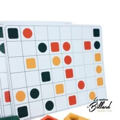 Les règles du jeu sont simples : il suffit de placer une grille “défi” devant le joueur. Celui-ci dispose de pièces en bois de différentes couleurs percées de ronds ou de carrés à différents endroits.