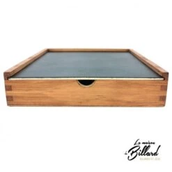 Pour faciliter le rangement, tout peut être placé dans un coffret en bois assemblé en queue droite. Cet assemblage résistant donne un côté esthétique. Cette boîte mesure 22 x 18 x 4 cm. Vous pourrez facilement lui trouver une petite place dans un tiroir dès que vous aurez terminé de jouer.