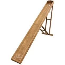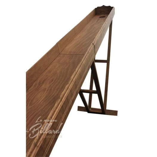 Nous avons conçu ce grand jeu en bois principalement pour un usage professionnel. Effectivement ce jeu géant fait 260 cm de long lorsqu’il est déplié, néanmoins il ne mesure plus que 150 cm plié. Pour compter plus facilement les points, les palets retombent dans un tiroir celui ci peut également servir de rangement pour le transport et le stockage. Les règles sont intuitives ce qui rend le jeu accessible à un très large public