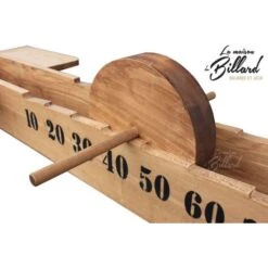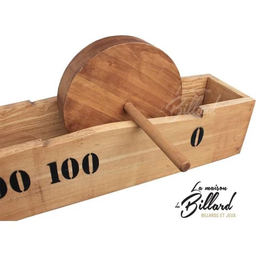 Doser votre force ! Le but de ce jeu en bois géant est de propulser la roue sur la zone de départ pour la faire rouler le plus loin possible sans dépasser la zone 100 sinon elle tombera dans la zone zéro.
