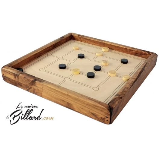 Il s’agit de l’un des jeux les plus vieux au monde. Le but est de faire des alignements de 3 pions. Dès que vous faites un alignement de 3, vous pouvez retirer un palet adverse. Le premier qui retire 7 pions adverses gagne la partie.