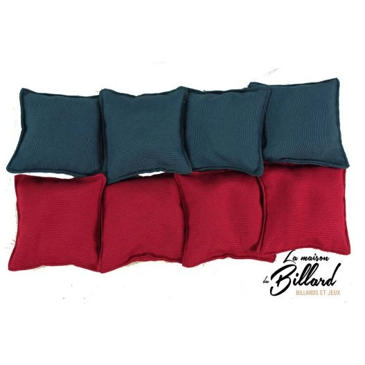 y aura l’équipe aux sacs bleus, et l’équipe aux sacs rouges. Les 2 premiers joueurs côte à côte commencent et lancent chacun leur tour leurs sacs de maïs vers la planche située à 8 mètres.