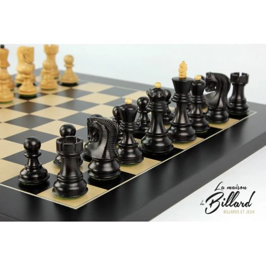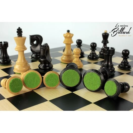 - 1 jeu de pièces buis naturel et bois ébonisé polies, lestées et feutrées