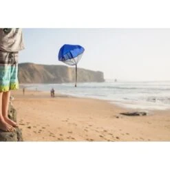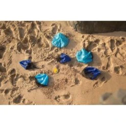 – 6 boules en bois de 2.5 cm de diamètre accrochĂ©e Ă un mini parachute en polyester (3 bleu et 3 bleu clair), dimension du parachute 42 x 42 x 25 cm