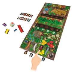 L’ensemble du jeu contient deux plateaux. Un grand et un petit, des fixations permettant au petit de tenir sur le grand. On retrouve aussi 60 morceaux de vers, 4 têtes de vers de terre, 4 fraises, 4 pâquerettes, et un dé de couleur.