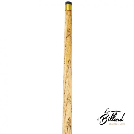 Une flèche en frêne : le frêne est la matière traditionnellement utilisée pour la fabrication des queues anglaises. Il offre une bonne rigidité et un bon contrôle de bille, même sur les longues distances.