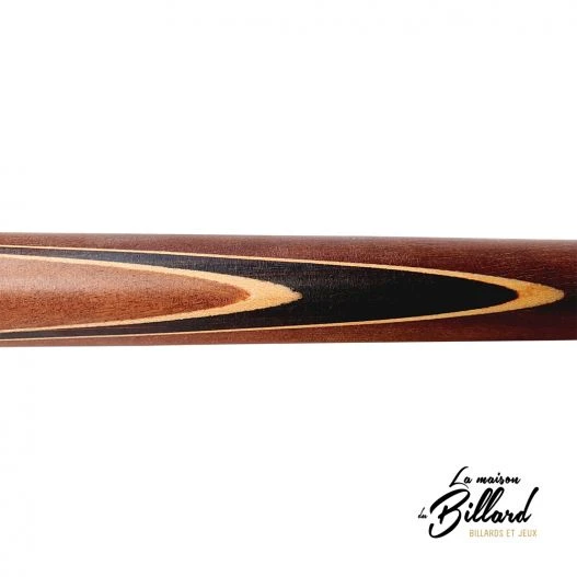 Vous retrouverez aussi de l’acajou, un bois plus orangé qui apporte du contraste au fût. L’équilibre des couleurs est élégant et les bois présents sur le fût sont de couleur naturelle. Cette queue de billard a un style intemporel et, à l’inverse des queues de billard peintes, elle se patinera et s’embellira avec le temps.