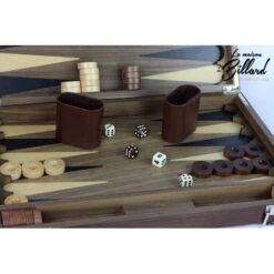 Ce jeu de Backgammon répond à toutes les exigences des vrais joueurs tant au niveau de la taille qu’au niveau jouabilité (emplacement des palets définis, palet légèrement creusés pour des mouvements de pions plus fluide). La surface de jeu est entièrement marquetée.