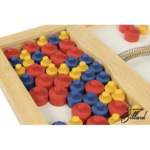 Alors jouez au Mikado horizontal. Il faudra être habile et avoir un bon sens de l’observation ! Si le ressort reste immobile, je gagne le pion, s’il bouge, je passe mon tour et je remets le pion en jeu.